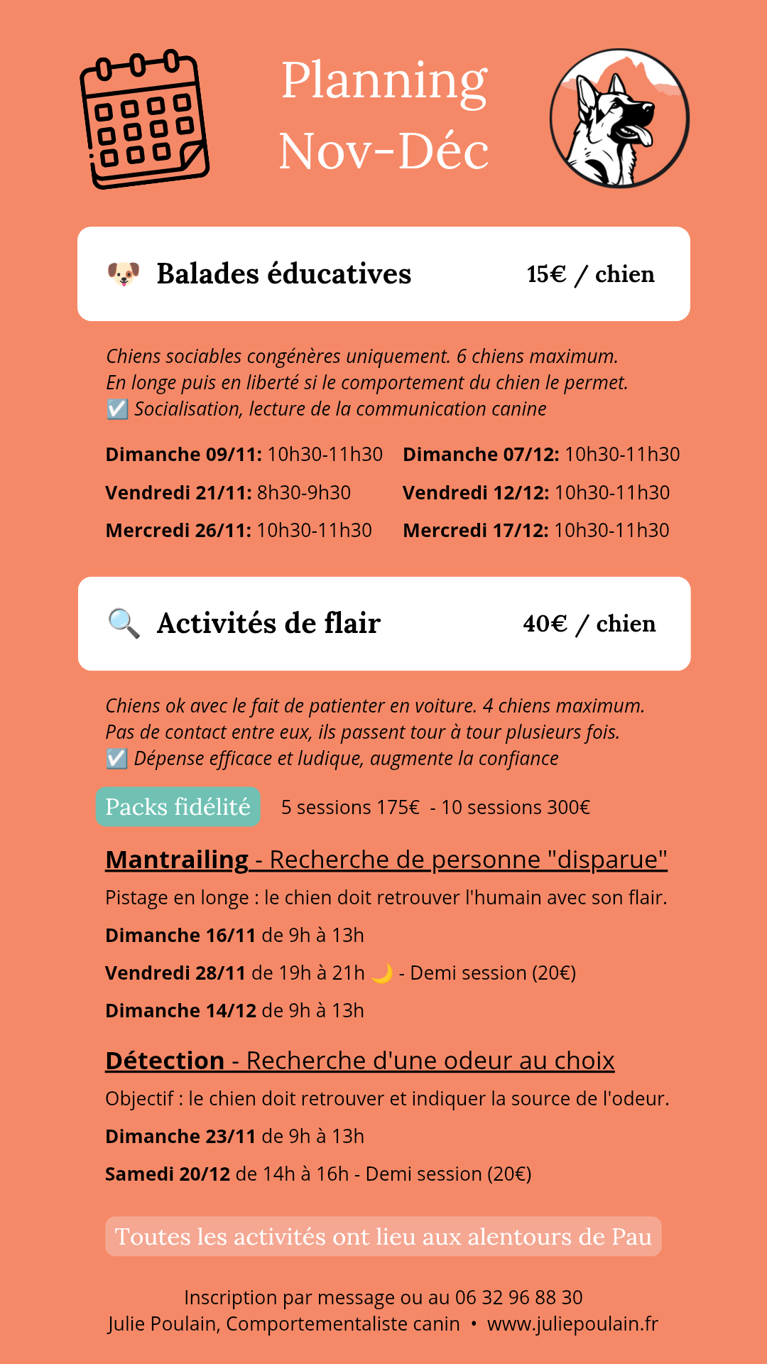 Vous cherchez à pratiquer une activité ludique avec votre chien aux alentours de Pau ? Continuer à faire le progresser en lui offrant des interactions de qualité, une dépense mentale et physique, le tout dans la bonne humeur et encadré par un éducateur canin spécialisé ? Vous êtes au bon endroit :)